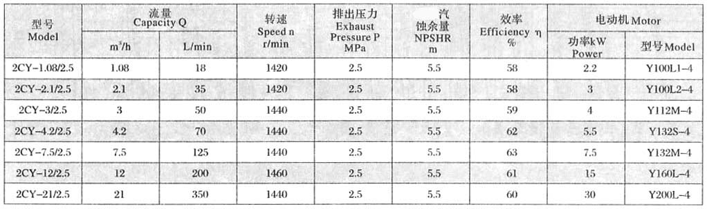 2CY系列齿轮润滑油泵性能参数: