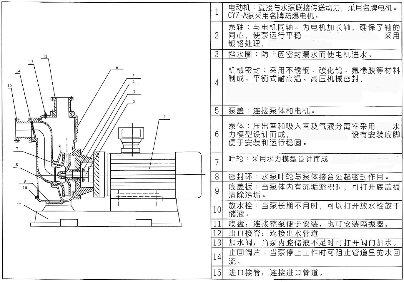 CYZ-A型直联式自吸式离心油泵适用于石油行业、陆地油库、油罐车的产品,并适合于作船用货油泵、舱底泵和压载泵及机器冷却水循环等,分别输送汽油、煤油、柴油、航煤等石油产品和海水、清水,介质温度-20℃-80℃,如改用耐腐蚀机械密封和不锈钢材质还可适用于化工、制药、酿造、电镀、印染、造纸、电力矿山等。