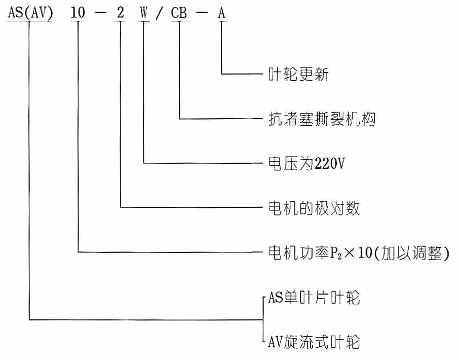 AS带自动切割潜水排污泵型号意义: