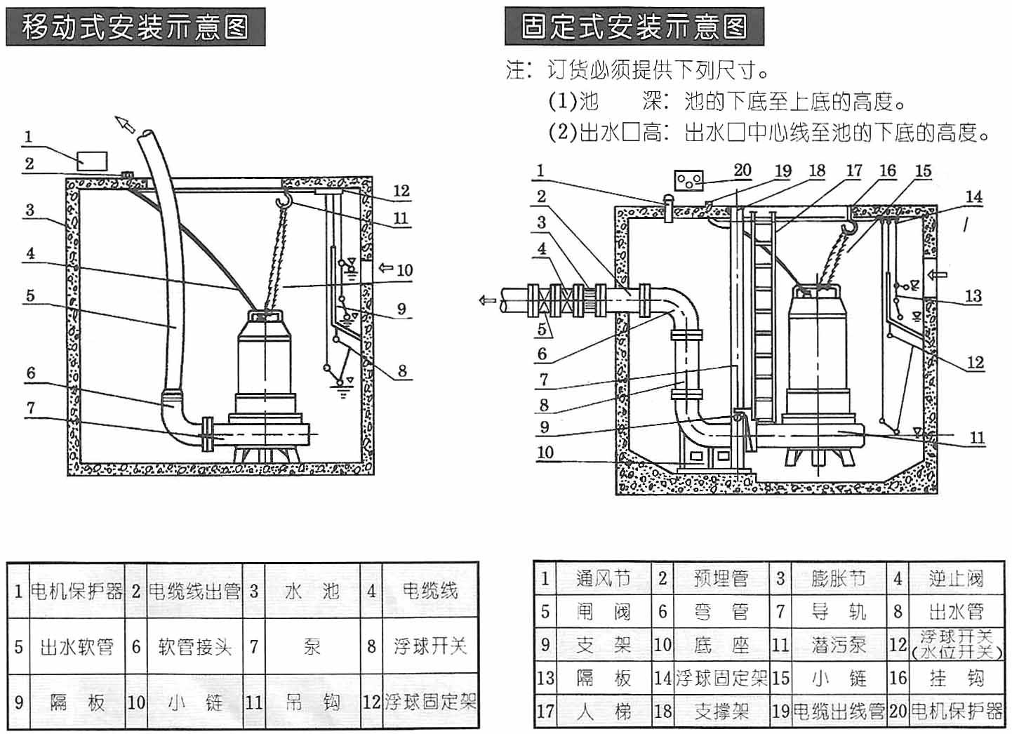 AS带自动切割潜水排污泵安装示意图: